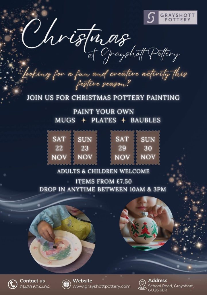 Get into the Christmas Spirit at Grayshott Pottery. Join us for our fun Christmas Pottery Painting Workshops, where you can decorate your own mugs, plates, baubles or even a personalised pet bowl. Create unique keepsakes, or the perfect heartfelt gift, just in time for Christmas
