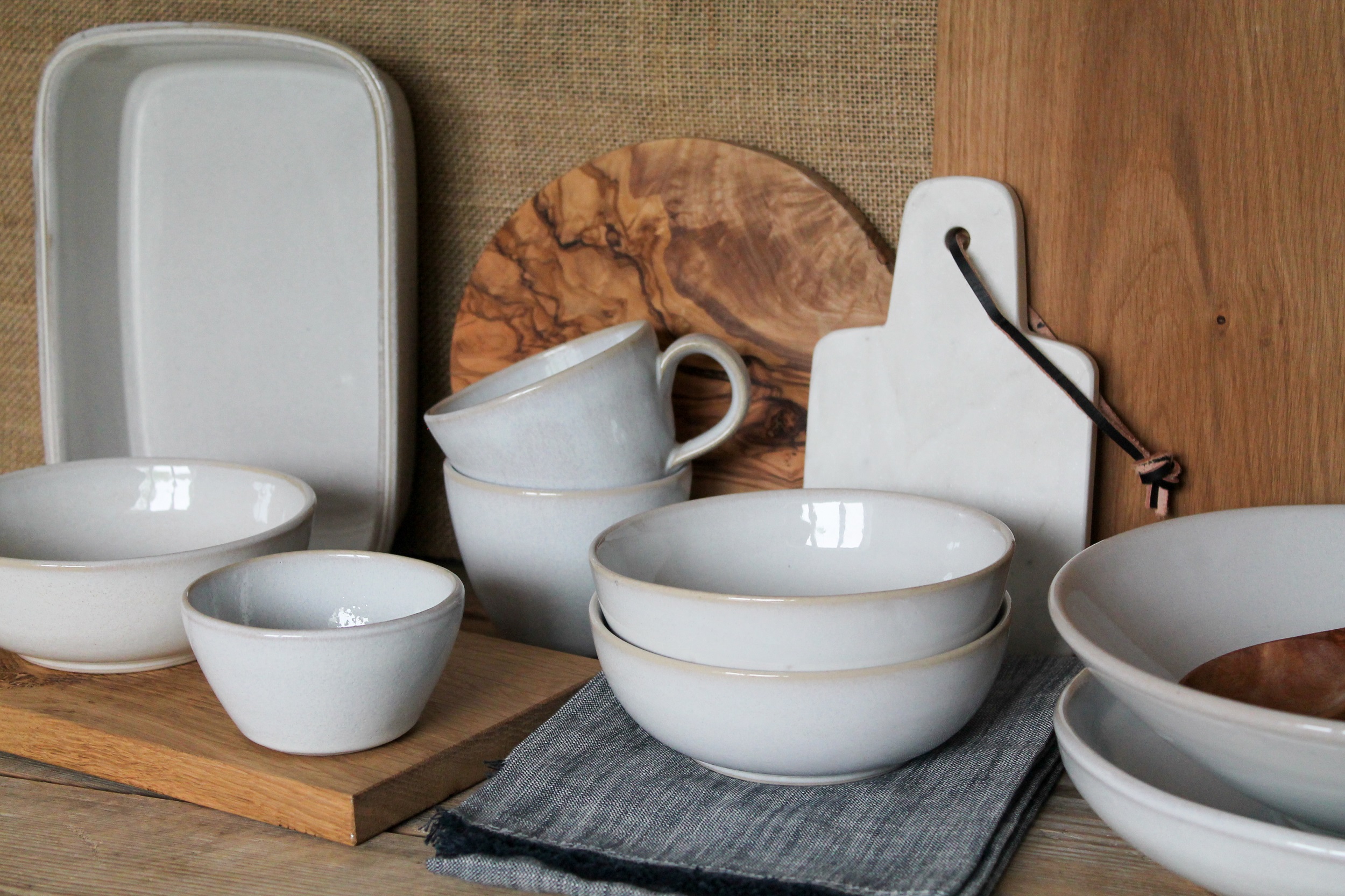 Murano is a contemporary, almost translucent white glaze, the delicate reaction to its surface gives a very subtle texture. This glaze naturally thins out on the edges of certain items, pairing well with the dazzling pearlescent shine.This range is suitable for use in the oven, microwave and freezer, and is also dishwasher safe.