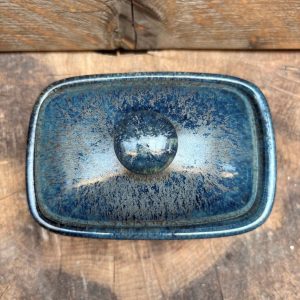 A lidded Butter Dish glazed in our reactive Nirvana Glaze