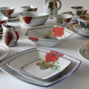 Poppy is one of Janice Tchalenko’s original designs for Dartington Pottery. A classic award winning design, the pattern has stood the test of time and continues to be popular today. The spontaneous use of primary colours in the pattern are applied by brush and slip trailers by our artists.