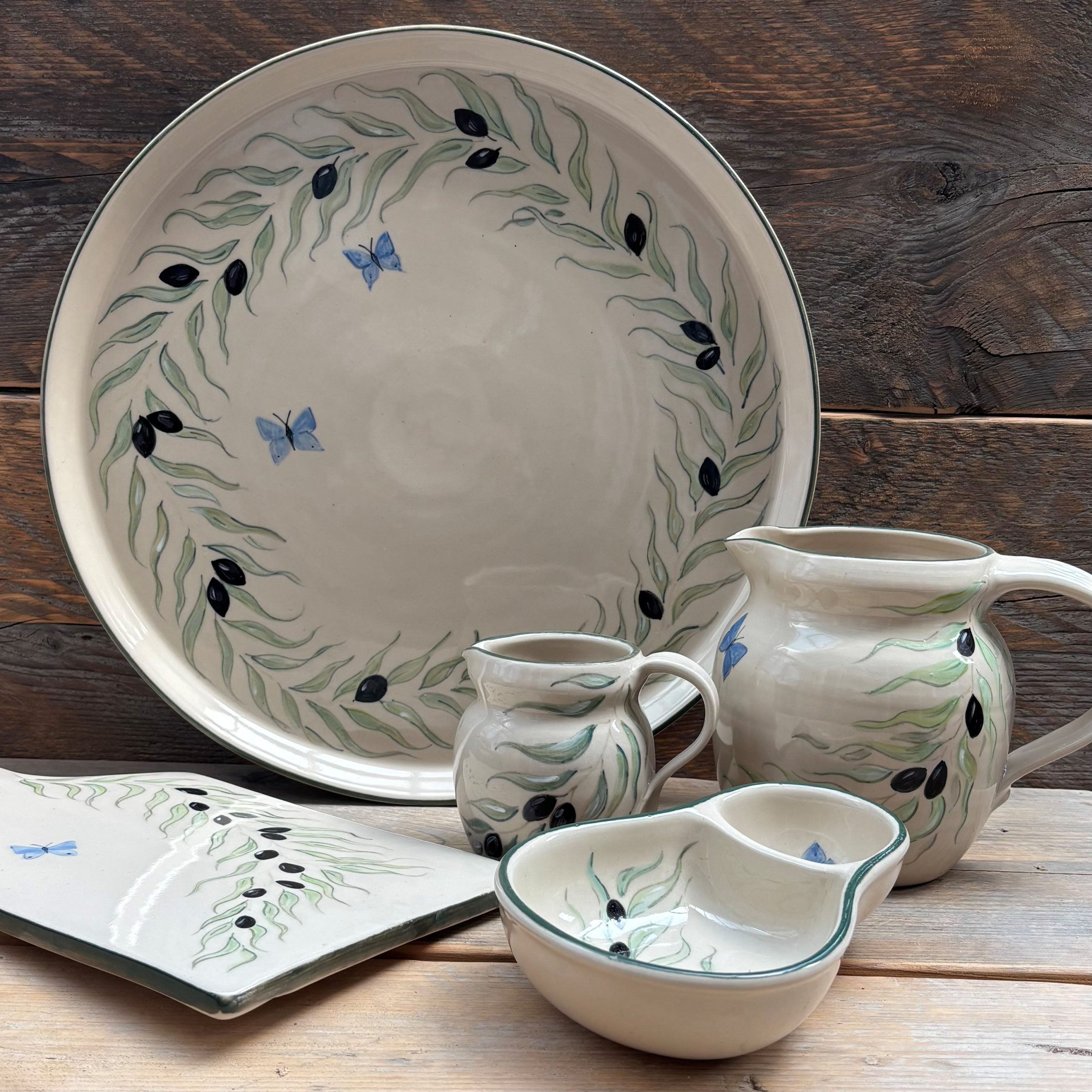 Tuscan Olive is a hand-painted collection by Belinda Luke inspired by the sun-drenched groves of Tuscany, featuring rich green leaves and earthy rustic tones, capturing the warmth and charm of the Italian countryside. Crafted with care and timeless artistry, the Tuscan Olive range brings Mediterranean elegance and natural beauty to everyday dining and home decor.